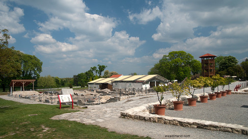 ... zusaetzlich schuetzt eine teilrekonstruktion seit 2013 das einzige erhaltene fussbodenmosaik der einstigen roemermetropole, ein nachbau der hoelzernen trainingsarena der carnuntiner gladiatorenschule ragt direkt neben dem amphitheater zivilstadt empor." (originaltext auf > www.carnuntum.at ) ....